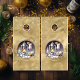 Add a touch of elegance and fun to your Camp Bride bachelorette weekend with these custom cornhole boards. Featuring a luxurious gold background with sparkling accents, this design includes a lantern, cocktails, and s'mores, perfectly capturing the cozy yet sophisticated vibe of your celebration. Personalize with the bride's name, year, and location to create a unique party game that doubles as a keepsake. Perfect for outdoor bridal events, these boards combine style and entertainment for an unforgettable experience.