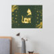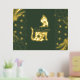 Get your real gold foil print 18x24 inch with a space cat silhouette in complete gold shiny tones surrounding with hearts, minimal shapes and with a dark green background . It has a luxury style with the real gold foil and is nice for coastal homes. Customize it with a short quote or your cat´s name and choose different sizes.
