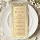 Elevate your wedding reception with this luxury gold foil wedding menu featuring elegant floral illustrations and a soft metallic sheen. Perfect for formal, romantic, or traditional celebrations, this vertical menu card displays a refined layout with space for starters, main course selections, and desserts. A sophisticated gold heart design crowns the top, symbolizing love and unity. Fully customizable for your wedding date, names, and menu choices—ideal for upscale weddings, black-tie events, or classic banquet-style receptions.