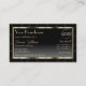 Make a lasting impression with this elegant and luxurious business card design featuring a shimmery golden frame and fine gold decor stripes with a modern black gradient background.