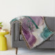 A quality printed throw has its advantages. This is a much finer weave throw than its loopier cousins, and though lighter, it is worth the investment for custom room accessorizing. The back is much prettier than the typical brown, and the fringe on the long sides very vivid, the selvage nicely done. Before photographing, I washed the throw in cold water, delicate, with a thicker woven throw the same size. On tumble dry low, this throw was dry in half the time as the other. This is a very practical quality if you use throws for furniture covers or to wrap up in frequently. The sleekness of the fabric makes it a great layer for accenting or protecting without the feeling of sitting on too much stuff. Perfect for napping or when you feel a light chill coming on. The color printing is beautiful and on this fabric, matched the design and color of my Photoshop image. This is an advantage for blending room fabrics and colors. The fringe on the short sides prints the colors from the design image and therefore varies from the side fringe. I streaked a white fractal line through the plaid pattern to give the illusion of weaving. This printed as crisp as an illusory thread, and put some white in the short side fringe, showing another advantage of print vs loomed- for artistic purposes, line lines, detail, and color integrity can be planned and preserved. My loomed throws have color limitations and more of a needlepoint texture. Print throws reproduce an exact image. The throw felt a little stiff straight out of the package, but this went away in the first delicate wash. Of course I searched the wash water for ink or bleeding and there was none.