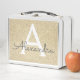 Luxury Gold Faux Glitter and Sparkle Elegant Lunch Box. The Lunch Box can be customized to include your initial and first name.