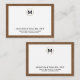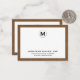 Timeless and elegant custom flat note card design features a brushed gold monogram initial logo medallion with name title and company below in classic block typography on a white card bordered with a brown leather textured print. Personalize with your monogram initial logo, name title and company or custom text. Space for your handwritten note is included and the back of the card features a complimentary gold monogram medallion with company name.