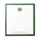 Elevate your stationery game with this monogrammed notepad featuring classic block typography and an emerald green textured print frame with a brushed gold medallion monogram. The notepad includes space for custom text, such as your name or other text, making it perfect for personal or professional use. Use it to jot down notes, ideas, and reminders in style. It also makes a great gift for friends, family, or colleagues.