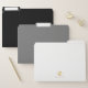 Product is slightly glossy - giving it a bit of liquid resistance. They did curl up a bit because my office is humid, but nothing that I couldn't fix with a paper weight. Standard thickness. I use these to on a three-tier desktop shelf to sort to-dos, to be filed, etc. I loved that they come in a three-piece set. Price wasn't too bad, especially with an easy to acquire 20% promo code and free shipping with ZazzleBlack. It was easy to add my logo and branding colors to these custom folders, after I wasn't happy with any pre-designed folders that I was seeing anywhere else. Colors came out as vibrant as expected. Logo and contact information is crisp and clear.