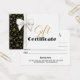 Luxury and rich holiday design featuring splendid Christmas gift bow and golden snowflakes pattern on a black background. This festive gift certificate is perfect for your small business or to gift friends and family.