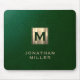 Elevate your workspace with our luxurious green leather and brushed gold monogram mouse pad. The striking design features a large initial in classic block typography, creating a personalized touch that exudes sophistication and elegance. The high-quality materials and attention to detail make this mouse pad a must-have for any professional or stylish individual.