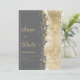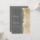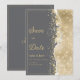 Classy luxury gold sparkle glitter wedding Save the Date invitation. Set against a grey background,