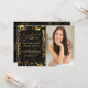 Invite your guests to celebrate your graduation with this stylish and luxurious invitation featured in gold and black.