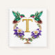 Elevate your writing experience with this masterfully designed hardcover notebook featuring the monogram letter T in gleaming gold, adorned with delicate diamond accents that trace its strong horizontal and vertical lines. The composition centers around this luminous initial, framed by two exquisitely detailed hummingbirds whose jeweled appearance rivals the finest brooches and pins. Their emerald bodies feature realistic feather textures with natural color variations and iridescent qualities, while ruby and burgundy throat patches add dramatic contrast. The wings showcase individual flight feathers edged in rose gold with diamond embellishments that catch and reflect light beautifully.