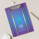 An elegant luxurious style abstract clipboards featuring violet and blue geometric design. Personalize with your monogram and name.