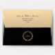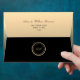 Make a sophisticated first impression with this luxurious wedding envelope featuring a rich black background, a glamorous gold return address section, and a personalized monogram seal. The inside reveals a stunning gold floral liner that adds a refined botanical touch. Perfect for upscale, formal, or modern weddings, this envelope effortlessly blends timeless style with elegant customization.
