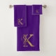 Luxury gold tones letter K in gold on a purple color background that can be changed.