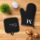 Luxury Monogram Script Black Oven Mitt & Pot Holder Set