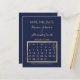 Luxury navy Blue Gold Calendar Save the Date Announcement Postcard