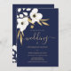 Luxury navy blue white gold floral wedding invitation