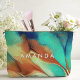 Luxury orange aqua faux gold glitter marble art accessory pouch