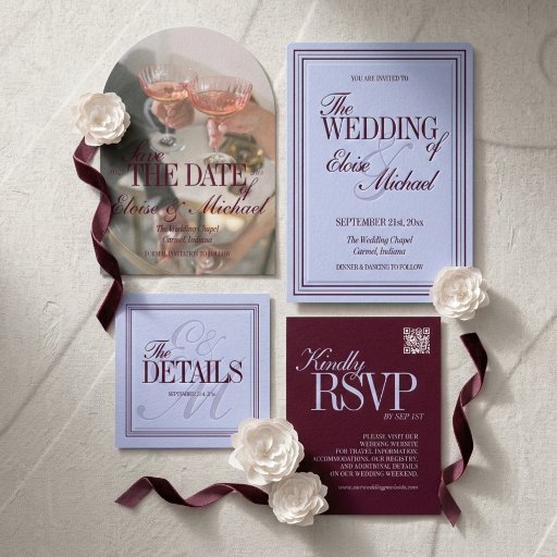 Luxury Periwinkle and Plum Formal Wedding Invitation