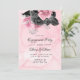 Luxury Pink Black Floral Inking Engagement Party Invitation