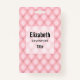 Name tag with a beautiful feminine pattern. Soft pink pattern in puffy diamond shapes with a gold bead in the center. Luxury elegance vibe.