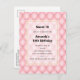 Birthday invitation postcard with a beautiful feminine pattern. Soft pink pattern in puffy diamond shapes with a gold bead in the center. Luxury elegance vibe.