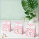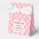 A favor box with a beautiful feminine pattern. Soft pink pattern in puffy diamond shapes with a gold bead in the center. Luxury elegance vibe.