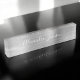 Silver Foil Metallic Stainless Steel Minimalist Business Name Plate with white lettered typography signature for the monogram. The Metal Business Card Name Plate can be customized with your name. Please contact the designer for customized matching items.