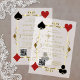 The invitation is printed on smooth, semi-translucent vellum paper, giving it an ethereal and refined look. The soft, milky texture of the paper creates a subtle sense of luxury, while allowing a faint hint of the underlying design to peek through. Glamorous and elegant design featuring modern QR code, gold Art Deco shape with Fleur-de-lis, playing cards suits, initials on the back; all on gold Art Deco pattern background. Use Personalize tool to add your info. For matching items, please, visit my QR Code Wedding Collection.