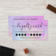 Reward your clients with this chic loyalty card, featuring a stunning rainbow glitter ombre design. The card offers discounts on the 5th and 10th treatments (20% and 50% off, respectively), making it a stylish and effective way to encourage repeat visits. Fully customizable with your business name, contact details, and branding, it's perfect for makeup artists and hairstylists aiming to leave a lasting impression.