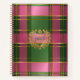 Luxury Rich Pink Green Plaid Crest Monogram Notebook