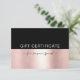 Modern, simple business gift certificate. Rose-Gold, Black. This sophisticated gift certificate combines modern elegance with a touch of luxury. Featuring a sleek black and rose gold design, it’s perfect for businesses looking to offer their clients or customers a memorable gifting experience. The customizable template allows you to easily add your business name, recipient details, and personalized message. Ideal for spas, salons, boutiques, or any business that values style and professionalism. Make your clients feel special with this chic and timeless gift certificate.