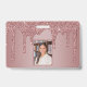 Girly Rose Gold Sparkle Glitter Drips Monogram Photo Badge with fashion faux blush pink/rose gold glitter drips on a chic background with your custom monogram and name. Great for anyone who loves the luxury glam lifestyle. Perfect for your luxury aesthetic! You're dripping in luxury - show it! Please contact us at cedarandstring@gmail.com if you need assistance with the design or matching products.