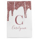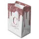 Luxury Rose Gold Sparkle Dripping Glitter Monogram Medium Gift Bag
