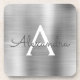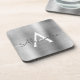 Luxury Silver Brushed Metal Monogram Name Initial Beverage Coaster