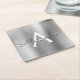 Luxury Silver Brushed Metal Monogram Name Initial Square Paper Coaster