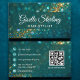 Luxury Teal Gold Glitter Hair Stylist QR Code Business Card