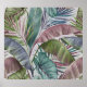 Pastel tropical pattern featuring banana leaves and palms, great for fabrics.