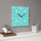 Luxury Turquoise & White Damask Decorative Pattern Square Wall Clock