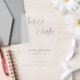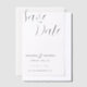 At the heart of the design, the words "Save the Date" are elegantly written in flowing, graceful calligraphy. The script is fluid, with delicate curves and a slight flourish that echoes both the modern and the classic. The choice of font is sophisticated and timeless, giving a sense of glamour while maintaining the invitation’s understated beauty.