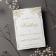 Plain white envelopes are included with paper invitations and will come to fit the invitation size you select. If you don’t need the envelopes, you may choose to not receive them by selecting the dropdown below "Envelopes" and choosing "None." If you’d like to have a design on your envelopes, you can browse all of these available envelopes to find the design that complements your Luxury White And Gold Floral Wedding Invitation.