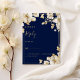 Luxury white gold floral navy blue RSVP Invitation
