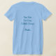 My overall review is that the T-shirt is nice, it fits true to size however the font is significantly smaller than advertised and you can't read it. The printing is unreadable and there is a strain to read it. It does not look like the advertised product. Maybe the shirt color is darker or a larger more visible font should have been used. Photos with and without flash and font is barely legible.