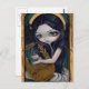 A beautiful angel playing a lyre, with a golden halo. The original was in a lovely gothic arch frame that my husband Matt made for me. My own original acrylic painting!