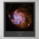 This dramatic composite image of the Spiral Galaxy M101 is a merging of visible imagery from the Hubble Space Telescope, infra-red image from Spitzer, and X-ray image from Chandra. It was released to the public domain by NASA.