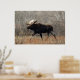 Bull Moose Poster. A big bull moose lumbers through the brush in a sand hills area of southeastern Alberta, Canada. Moose seem out of place in this dry, sandy terrain, that has very little water to support the aquatic vegetation moose usually feed on.