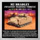 In service since 1981. The M2 was named after World War II General Omar Bradley, The M2 carries a crew of three and a six-man infantry squad. The M2's primary armament is a 25 mm cannon which fires up to 200 rounds per minute and is accurate up to 2500 meters depending on the ammunition used. It is also armed with twin BGM-71 TOW wire-guided missiles held in a rectangular compartment on the left side of the turret which are capable of destroying most tanks out to a maximum range of 3750 meters. The M2`s top speed is 41 mph. It saw action During the Gulf War & Iraq War.