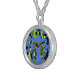 I chose gold plated so that the metal would not react with my skin oils and perspiration. But, I changed the necklace from the gold plated one to a sterling silver. My skin cells will tarnish the silver. But it will not look as bad if some portion of the gold plated necklace somehow became compromised. Zazzle did a find job turning the picture into a pendant for me. As you can see, the colors and the printing of the final product, match the preview. The picture I took is not very clear. But I am pleased with the product I received.