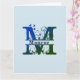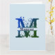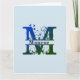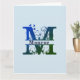 Fancy split 'M' monogram in blues and greens with silhouettes of fancy flourishes and butterflies. Add your own name as center text.