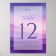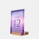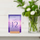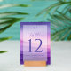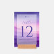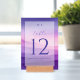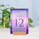 This elegant table number holder features a soft gradient color palette of purple and pink hues, creating a dreamy and romantic atmosphere. The design showcases a clean layout with the number "12" prominently displayed in bold typography, complemented by a stylish cursive font for the word "table." Perfect for weddings or formal events, this holder adds a touch of sophistication to any seating arrangement while providing clear identification for guests. Its customizable nature allows it to be tailored to fit personal preferences, making it an ideal addition to celebrations that prioritize both style and functionality.