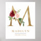 M Letter Monogram Name Marsala Floral Nursery Poster